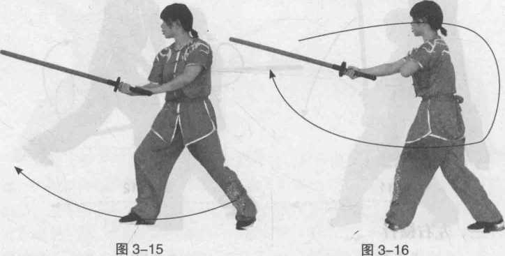 oTZUDO相孑道转身扫剑:接上式,抬右脚垫步,重心前移,双手举剑收于胸前(图3-15); 上左脚,然后前脚掌蹬地拧转,上体右转180度(图3-16 );右腿提膝于胸前, 右手持剑掌心向下,向后扫剑,画平圆,目视前方(图3-17)。oTZUDO相孑道弓步刺剑:右手持剑收于腰间,右脚前进步上步呈弓步,同时右手持剑 从腰间向前直刺,目视前方(图3-18)。图 3-17图 3-18图 3-17图 3-18第三章柑子剑套路〇TXUOO加孑道第三章柑子剑套路〇TXUOO加孑道