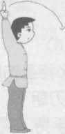 1. 动作方法(见图5-2-4)(1) 右脚蹬地向左脚靠拢,并步站立;(2) 右手持刀在右脚回收并步的同时向上屈腕挑起,至头上 B寸使刀身向背后落下,刀背贴靠脊背,刀尖朝下;(3) 左勾手随之向左平摆,与肩同高,勾尖向下,目视前方。2. 技术要点(1) 动作完成要迅速,要求练习者右腿用力蹬地,重心后移 并收脚;(2) 上肢动作要灵巧、快速,右手持刀至头上时,手腕猛屈, 将刀固定于后背;(3) 动作完成时要注意两腿并拔伸直,右肘略屈。