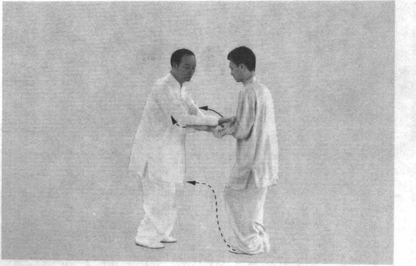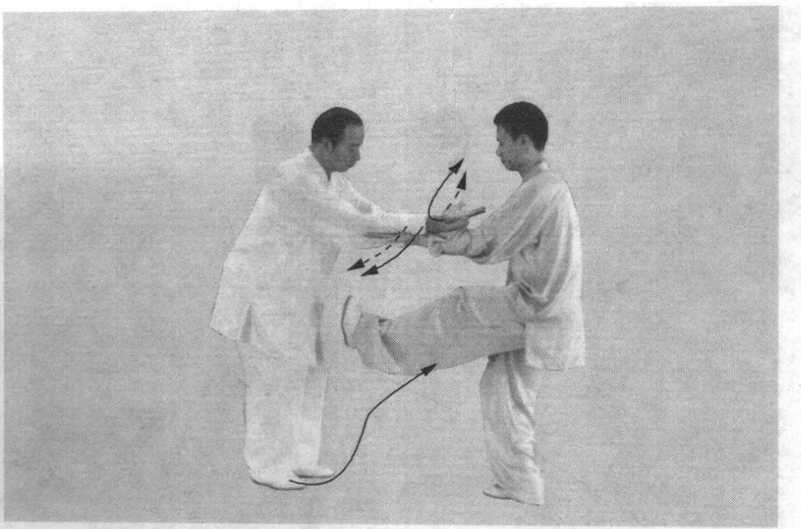 ② 乙随甲按,两臂要同甲沾、连、粘、随,然后缠丝外 旋,守而后攻,变手要巧妙。