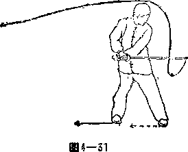 (1) 网身横抹上动略停以左脚跟、右脚掌为轴身体速向右转90度双手握剑随身体转动向右横抹。着力点由剑刃后端向前移动剑实向左剑刃向前与腹同高。目随剑行(图-31)