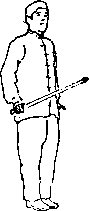 猴形剑往返练到原来预备势的位置时回身抹剑后做收势