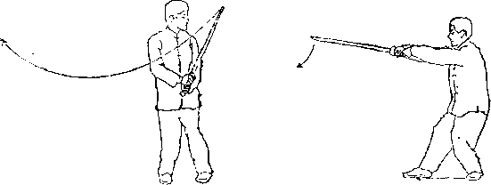 剑停于胸前剑尖向前与胸同高。目视前方(图4一37)