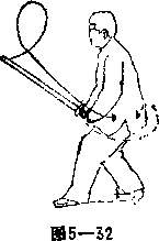 上动略停重心后移,上动略停重心后移,右腿屈膝半蹲左脚微向后移动成右腿屈膝半蹲左脚微向后移动成9收势左四六步。右手压握剑臂外旋与左手剑指一齐将剑拉回至右胯前剑尖向前上方与肩同高,左手剑指随之而动扶在右手腕上指尖向右手心向下。目视前方(图5—32)。