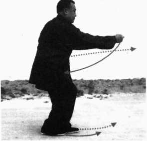 以下可继续交替进行,向原地打回,往返趟数不限,最后打 到起势的位置,再回身做收势的动作。