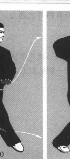 4.右脚上弧形步(向左转身)成马步的同 土,