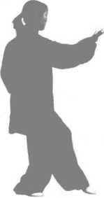 右掌下按时臂不要伸直,并和右掌动作协调,如鹰捉物之 势。脚要里扣,身体略向前倾。两掌下按要与右脚进步协同一 致。
