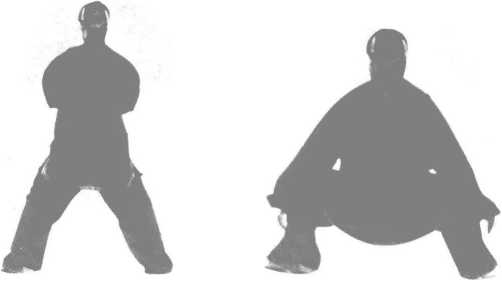 接前式,两手分开随身体下沉而沿身体两侧下插,同时往外