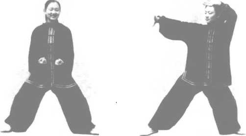 前手上托为格架带捋敌手之意,后手击出是击敌肋下部 位。训练有素后,发抖弹之力伤人于胯托功实是易事,且此功后 隐含着大量的腿法、手法、身法。学者不可忽视。
