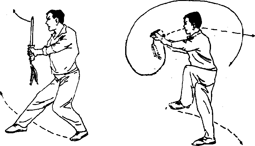 、要 点:推斩剑的剑身要横,剑刃要平,力达下刃中段。 二十五、转身劈剑