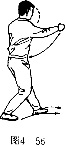 侧,拳心向上;目视前方(图4 — 55)。