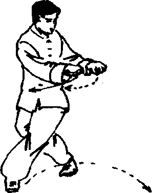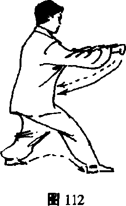 (1) 左脚向前迈一步,重心前移,脚前掌着地,双腿屈 膝半蹲并步。双拳向内、向下收回,置于腹前。拳心向下, 目视前方。(图113)(2) 身体迅速向左、右后转,右脚为轴,转体180度。 同时,左脚向左、向后退撤插步。使双腿成交叉腿。双拳随 转体而向左前方冲击而出。目视双拳。(图114)〔要点〕转身灵活,稳健,不可左右摇晃。拧腰旋劲,78图111图111图113图1139 1149 114图111图111图113图1139 1149 114身体保持平衡,手脚互为对劲。