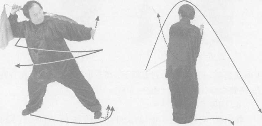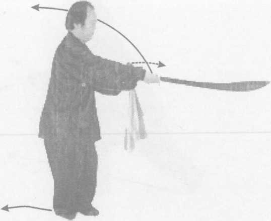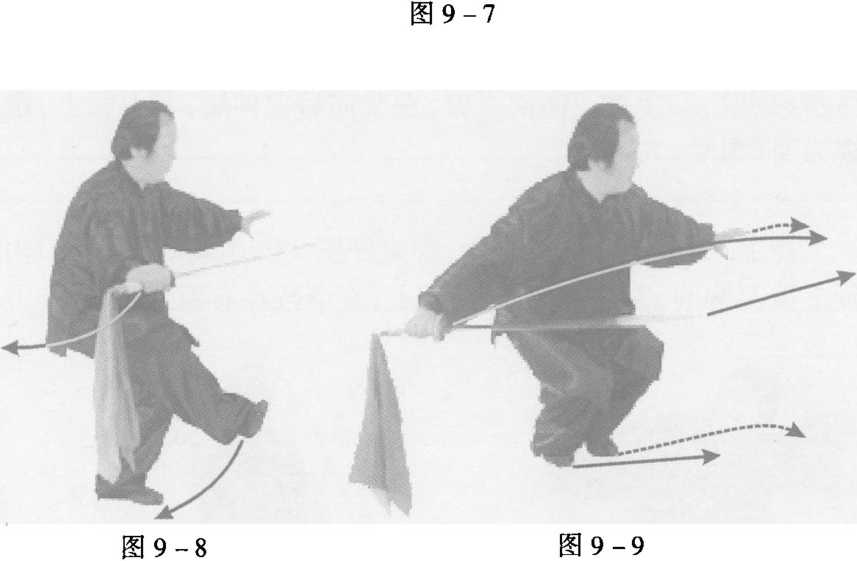 接上式,两脚不变, 右手下落握刀柄(图9-