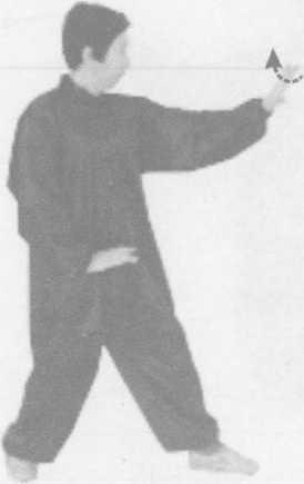 外旋经胸前向前上攒,高与口平,拳心朝上斜向前;左拳在小腹 前,拳心朝下斜向前;眼视前方(图3 -22)。