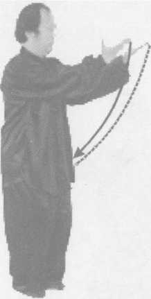 接上式,右脚随并左脚,重心在左脚;同时,两拳下落至小 腹前,拳心朝上(图4-227)。