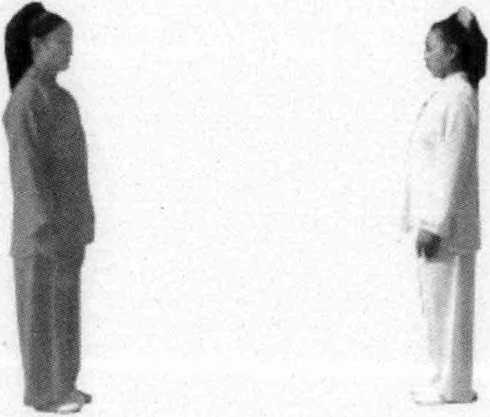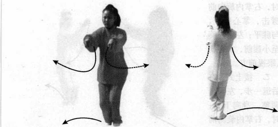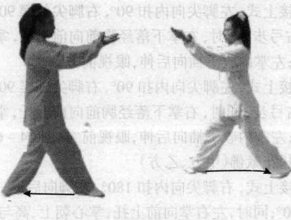 甲接上式,右脚后退并左脚,眼平视前方。