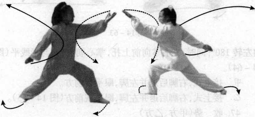 園求丛爷向左转180、同时,左右掌向前上托,掌心朝上,高与视线平(图 14-64)0