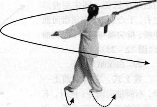 图 12-25图 12-25接上式,右脚尖 向内扣180。,左脚尖 向外摆135°,身随向