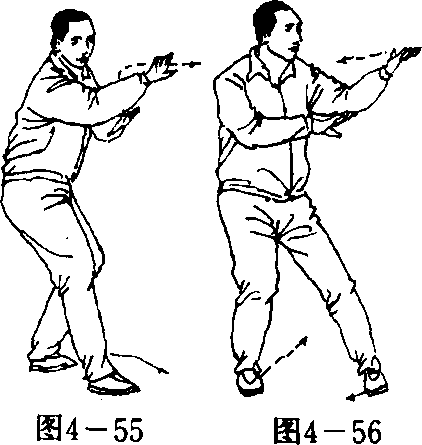 ③右脚向左脚后插,身体随着向右转90。(图4—57)。