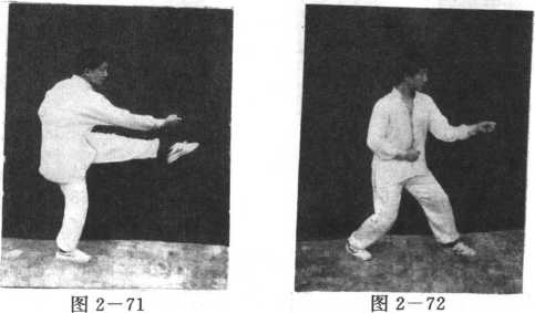 与本拳二、右弹踢扯钻拳练法(一)(二)同,唯左右有别 (图 2—71,72) ?图 2—69 图 2 — 70