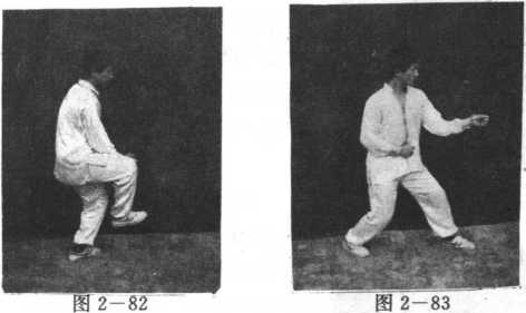 裹膝拳,膝里侧的为裹劲,膝外侧的为砸劲。堵门腿前踢, 高不可过尺,动作要上下协调。