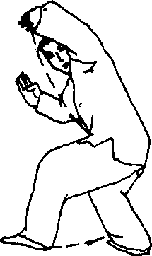 两掌翻转要快,要圆活,双臂分撑与左腿进步半蹲要协调一 致,手足齐到位。定势时头要有顶劲,肩要扣,背要圆,臀要收; 撑掌时,劲由腰发,力达四梢,劲贯全身。