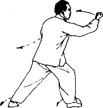 与鼻齐,左拳内旋,拳心向下,回落置于左腰腹处;目视右拳 (图 ll)o