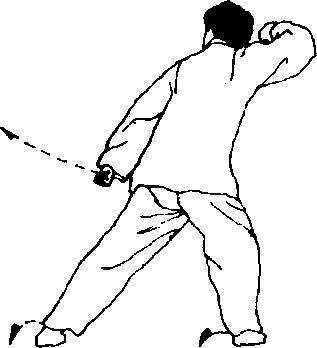 (4) 左脚外摆,右脚随之向左脚前方上步,脚尖微扣;同时左