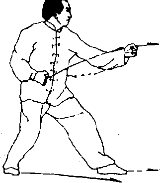 穿拳与转体要协调配合,以腰带臂,手眼相随。上穿拳高不 过头,下穿低不过胯。两臂要走螺旋劲。