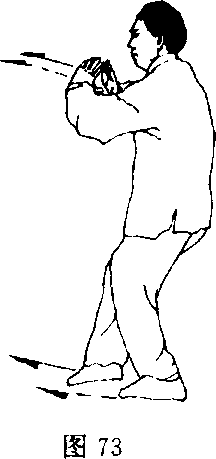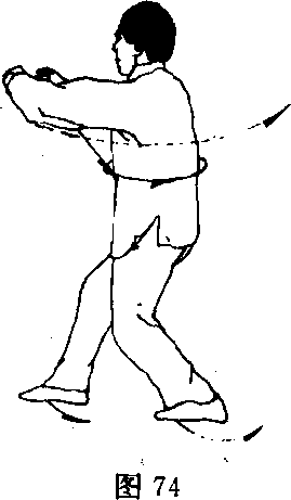 前撞击,力达掌心;目视两掌(图74)。