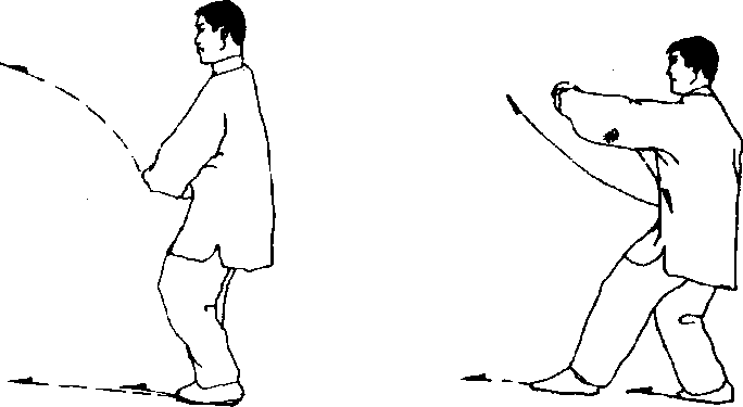 抹掌要松肩垂肘,圆活自然,随转体进行。