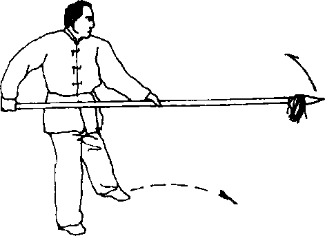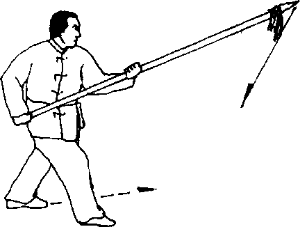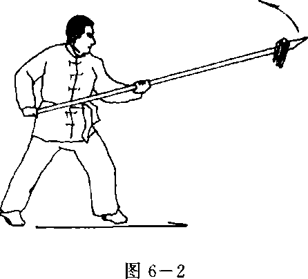 (1)接上势,右脚向右斜前方上一步,右手抽枪,左手滑握收 于右侧;目视前方(图6 — 1)。图6-1(2)左脚向右斜前方上一步,同时左臂外旋(图6 — 2)。(3)右脚向前一步,左臂继续外旋;同时右小臂内旋,将枪抽 至腰间,上体左转,枪尖指向左上方,枪尖与胸齐;目视枪尖 (图 6 — 3)o[要点]右手抽枪,左手外旋要协调一致。图6 — 3