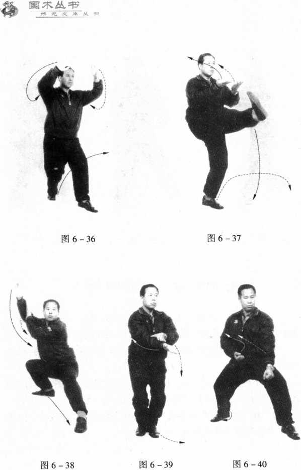 2 .并步打撩阴掌,如图6 -39所示。上左步打左击腹锤,如 图6-40所示。