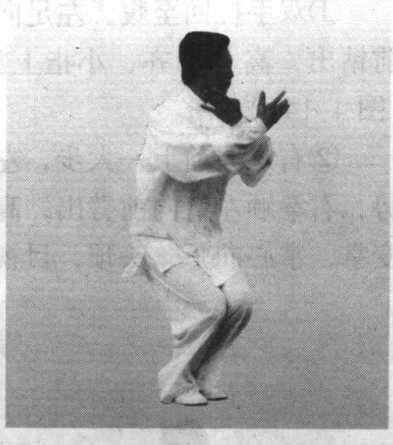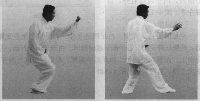 ②进步右崩拳要与手脚相合,与金鸡食米相同。