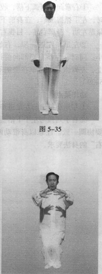 肩自然松垂,两脚跟并拢,两臂垂于体两侧,五指并拢,目视 前方(图5-35 )o