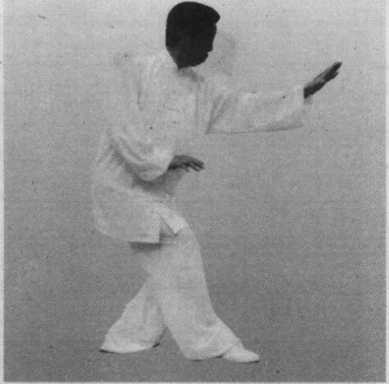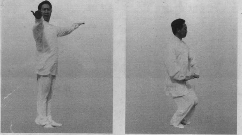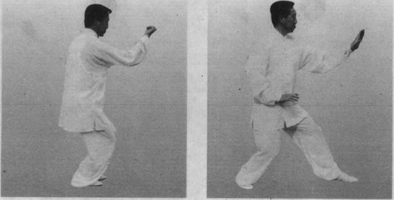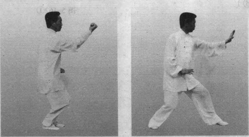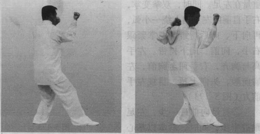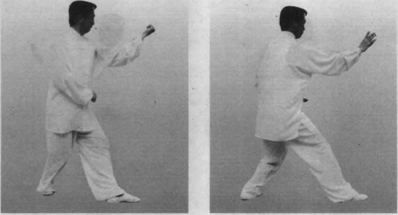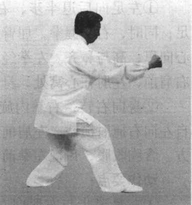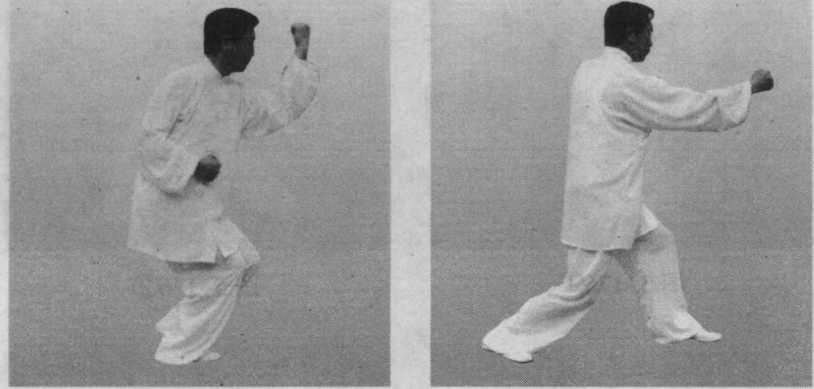 左手拉回,右拳打出与 右足跟步要整齐如一。