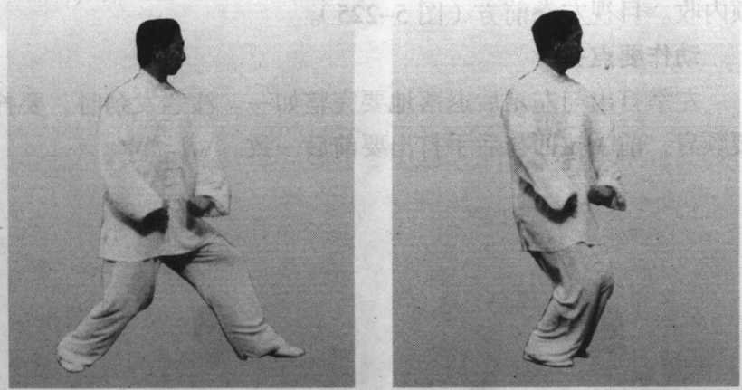 ②两拳下按与两腿起立要相一致。