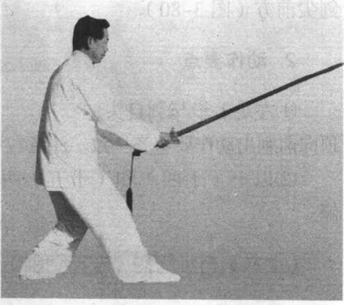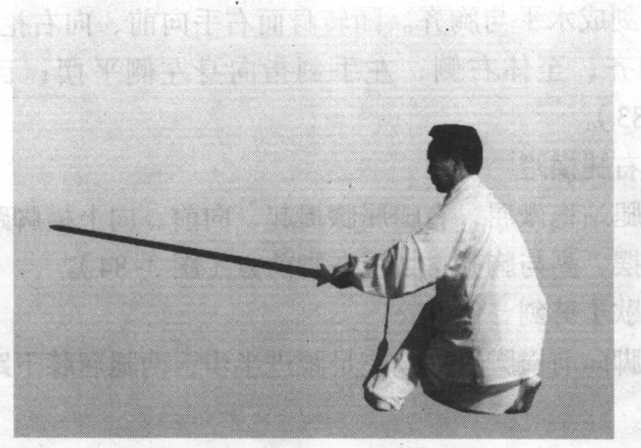 ②劈剑时,要抡劈而向回的拉带,注意松肩坠肘,两肘贴 肋,头顶坐臀。剑劈出要有定力。