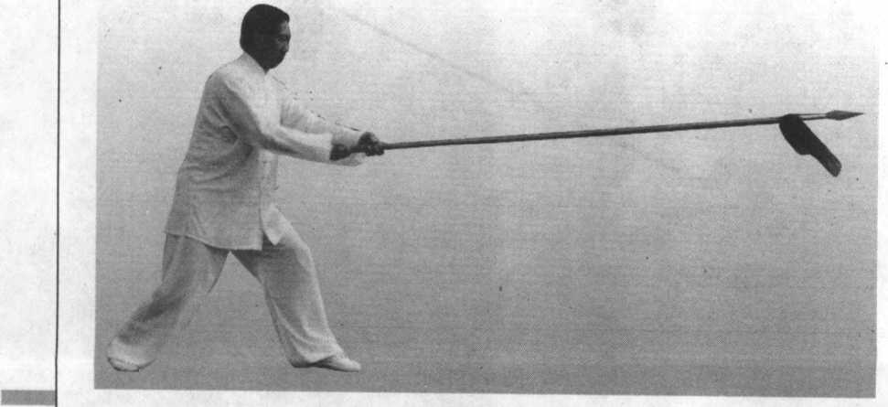 坐。枪劈出时,要有定点,不能使枪尖触地。