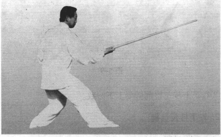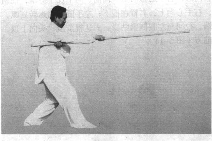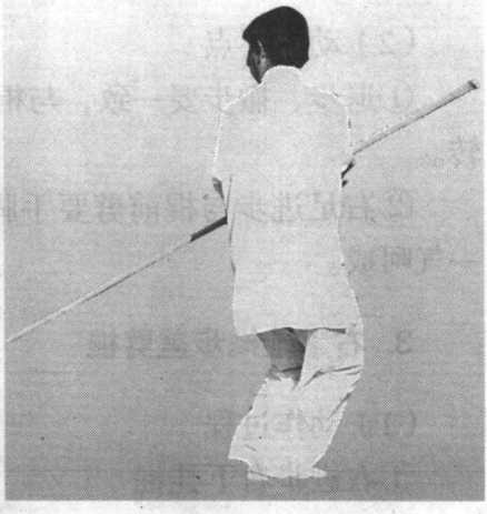 图5-8图5-8①前脚进步与棍梢的下挂 要相合,手脚齐动。