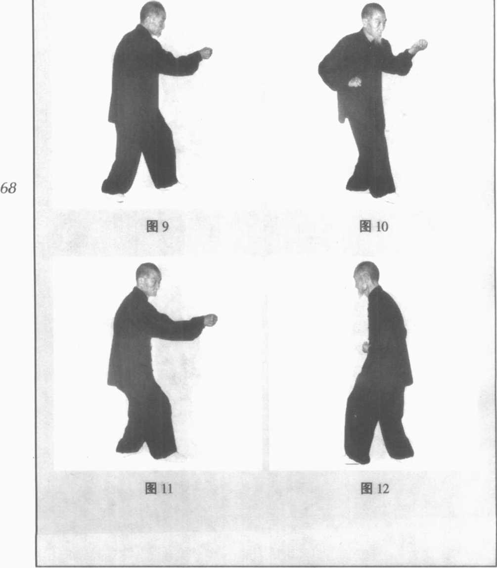 1. 右劈拳(图2、3)66图76. 左拗步炮拳(图9)7. 垫左步上右步横拳(图10)6.右顺步顺步崩(图11)7. 转身:接着做来趟,或者左右肢体互换,要求相同。(图⑵8. 收势:三体势调息收势。(图13、14、15、16)图16图16图15图15I?I?图13图136969图16图16图15图15I?I?图13图136969