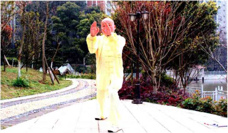 ^ :该组合动作中之双手臂斜劈,系阳功修炼之法则,双手于左上