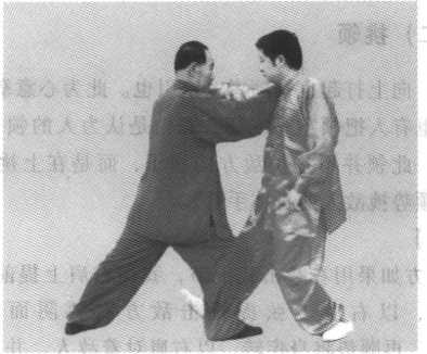.1.敌方如果以右拳击我胸膛,我顺势侧身迎进,以右肱