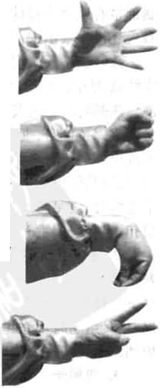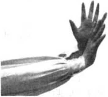 1 掌五指自然持开掌心内含,为荷叶掌。拳谱要求出手如钢铿二例如搓把、虎扑把等。2 拳四指紧握大拇指压在食指、中指上。拳谱要求攥拳如卷饼,例如横捶等。3 爪五指先自然楂开再五指指尖(第一节)往回勾。拳谱要求回手如钩杆例如龙探爪等。4 勾五指撮在一处弯曲如钩。本已是勾手所以更应该回手如钩杆了例如猴掏心等。5 蛇形手食指、中指擅开直伸出来其余三指回缩在后即大拇指压在无名指和小手指上例如蛇缠手等。6 鹰捉手右手掌五指擅开,掌心向前五指向上左手也五指自然楂开掌心向右五指向上,用左掌掌根置右掌虎口上例如鹰捉把等。