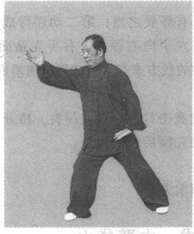 所谓大斜飞势,即如鸟展翅,是心意太极拳的展放之势。其 劲法是由肩部带动,因此左手臂要有斜棚劲,身体由缩而展,右 手向下有捋丝棉之感。所谓“运劲如抽丝,两手若撕棉”,即指 此,但其用力乃是身腰的力量带动。