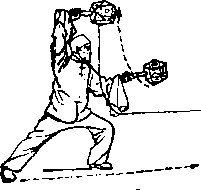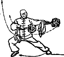行步要勇猛迅速步幅要大步数不限但以步一趟蚓距离为宜。双锤划弧要以腰带肩以肩带臂以臂带锤持续不断中途切不可有停滞现象。整个动作要勇猛稳健一气呵成。