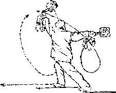 左脚向前进一步右脚随之前进一步成右弓步同时左锤向右侧、向下经体前向左侧划弧至左腿外侧再向外、向前上方划弧至体前右锤下落至右腮外侧再向外、向前上方划弧至体前双锤均高与额平两臂伸直手心向下二锤头相对目视双锤(图-25)