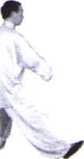 身体重心置于左腿上,松腰敛 臀,右脚轻轻上步,上体保持端 正;以肩臂带肘,屈肘舒腕。