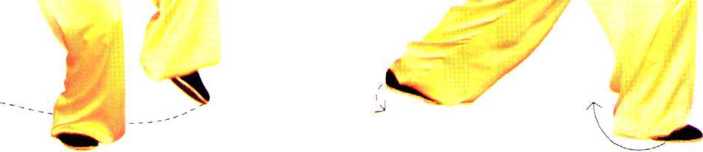 上体微向左转,左腿屈膝提起, 脚尖自然下垂,缓缓向左后方 退步,脚前掌着地;重心仍在右 腿;同时右臂内旋屈肘,收至耳 旁,掌心斜向下,掌指斜向上。
