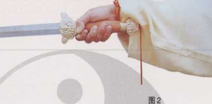 右手自然展开,拇指和食指靠近 护手将剑把握紧,其他三指握于剑 把,以拇指根节和小指外缘的掌根部 位控制剑的运动(图2)。