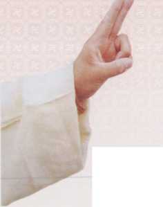 ?食指与中指伸直并拢,其余三指 屈于手心,拇指压在无名指与小指 第一指节上(图4)。
